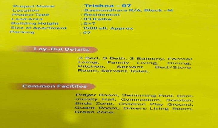 Extra Facilities: Prayer Room, Community Hall, Swimming Pool, Gymnasium, Children Play Ground, Green Zone.
