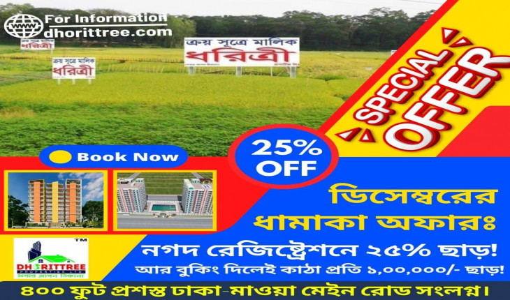 এছাড়াও ৩,৪,৫,১০,১৫ ও ২০ কাঠার মধ্যে রেজিষ্ট্রেশন ও বিভিন্ন কিস্তি পরিশোধ করা যাবে।