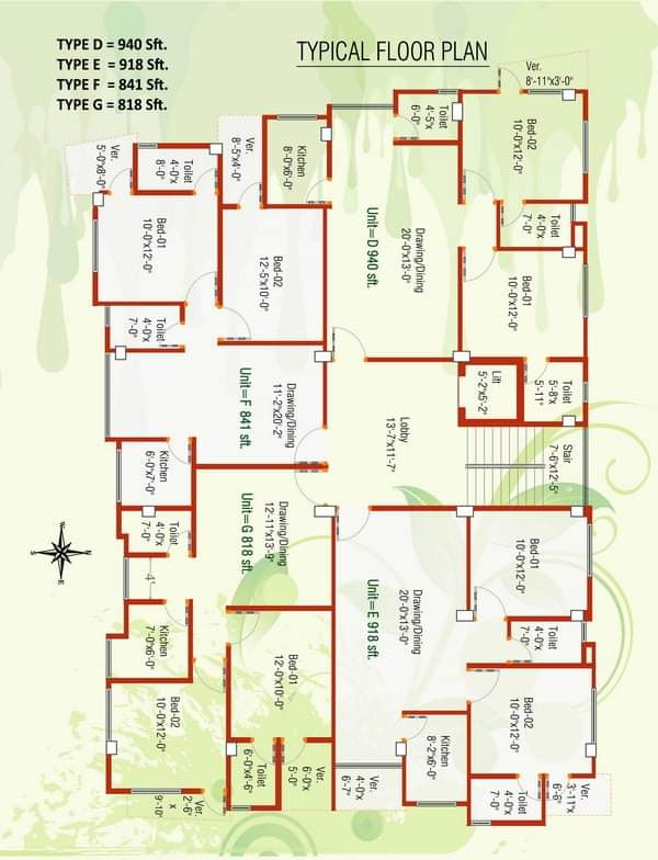 শুধু মাত্র ৮ম তলায় ৪ ইউনিট ৮৪১ বর্গফুট, ৯৪০ বর্গফুট এবং