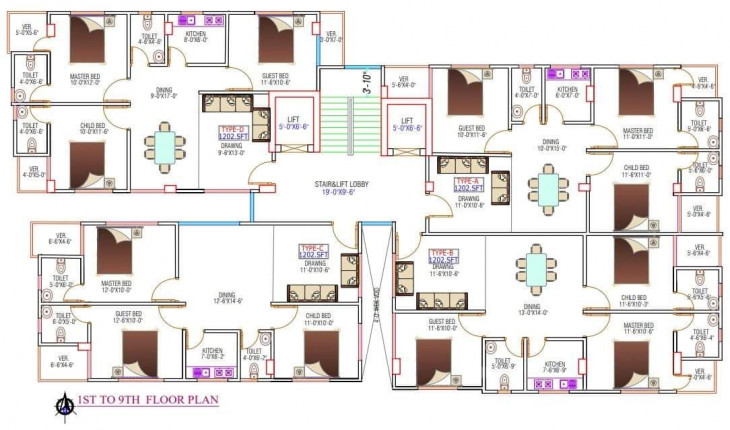 ☑️ফ্ল্যাট সংখ্যা ৯X ৪ = ৩৬ টি।