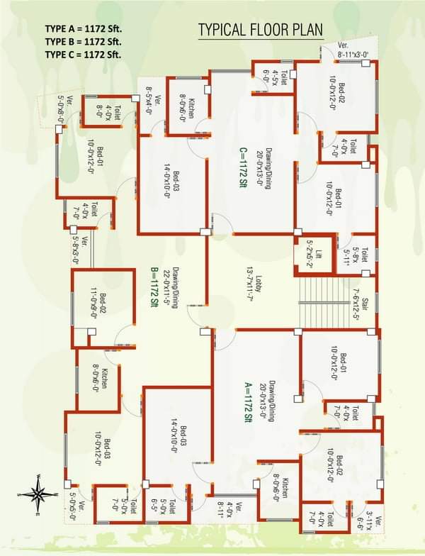৪র্থ, ৬ষ্ট তলায় ১১৭২ বর্গফুট এর ফ্ল্যাট বিক্রয় প্রতি ফ্লোরে ৩ ইউনিট করে।